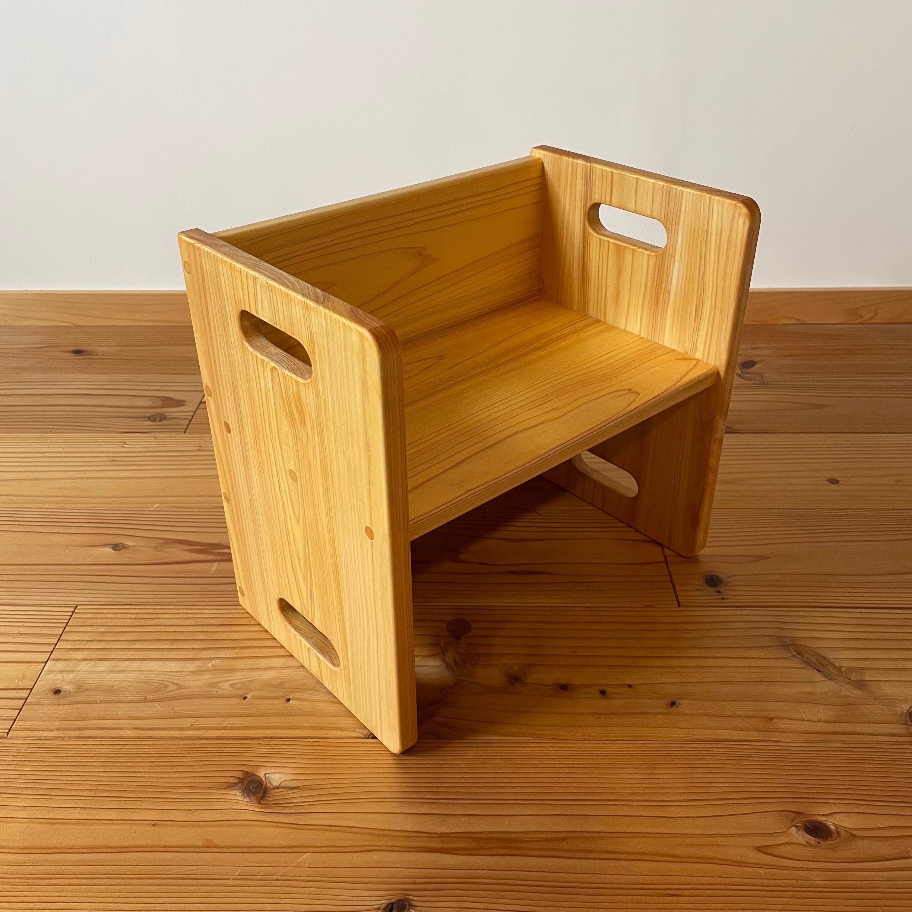 【吉野ひのきの箱いす】成長に合せて座面高を変えられる桧の椅子、自然植物性塗料で仕上げました ※木の歯がためプレゼント